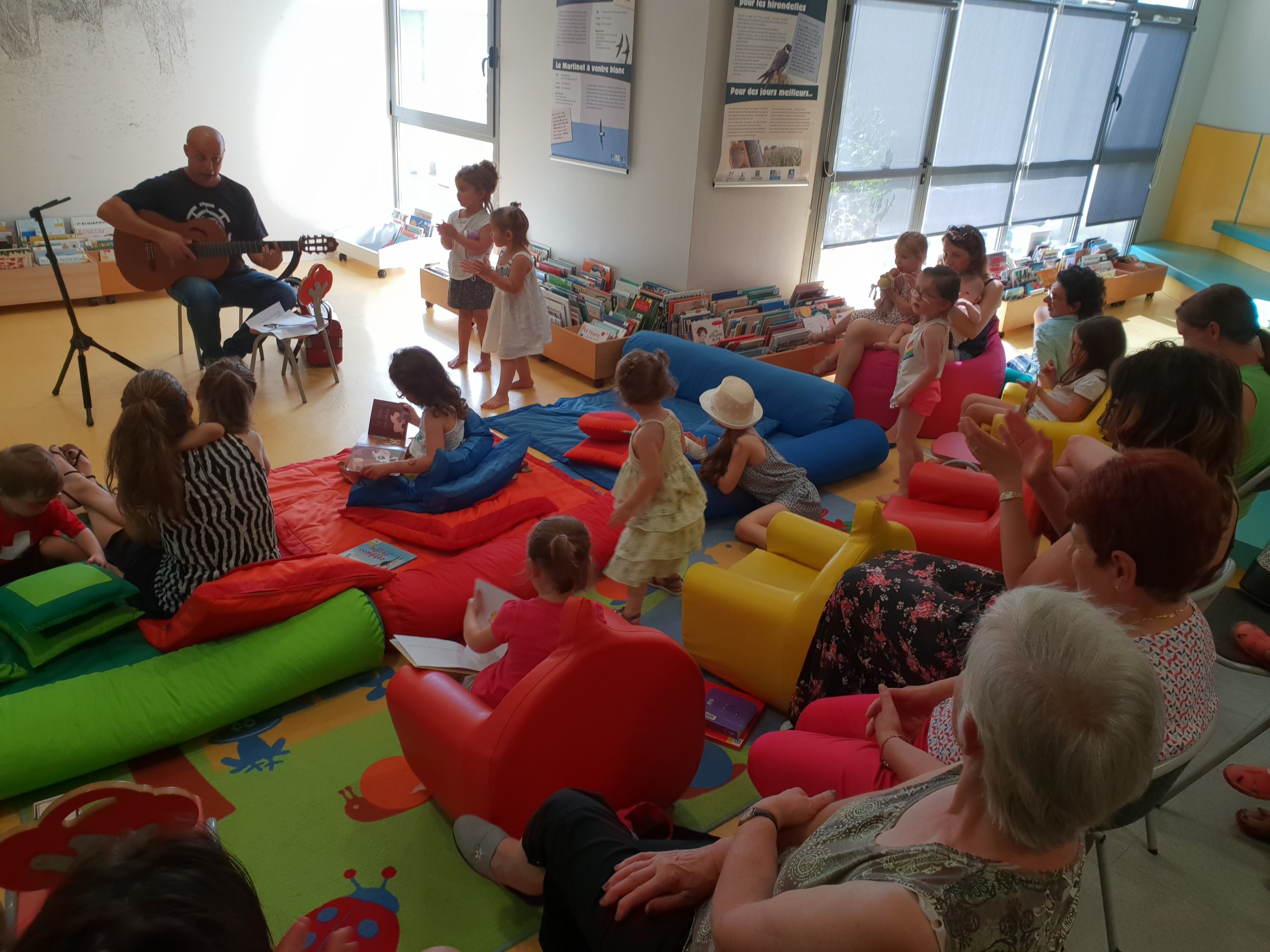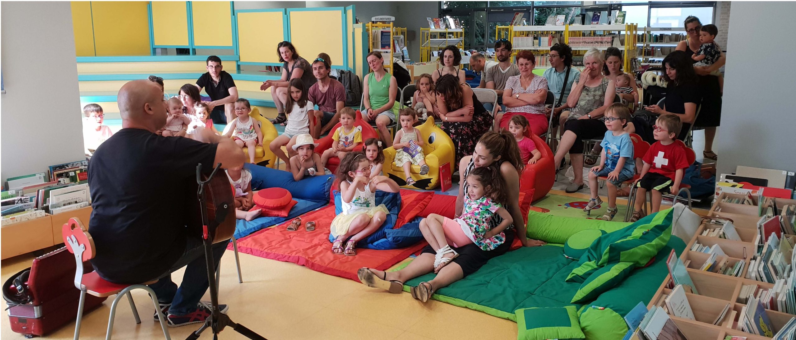 Assis par terre – Spectacle de chansons originales pour les enfants de zéro à dix ans. Écouter, participer, jouer et créer : un joli moment de musique et de complicités. Spectacle adapté aux crèches, écoles maternelles et festivals jeune public.